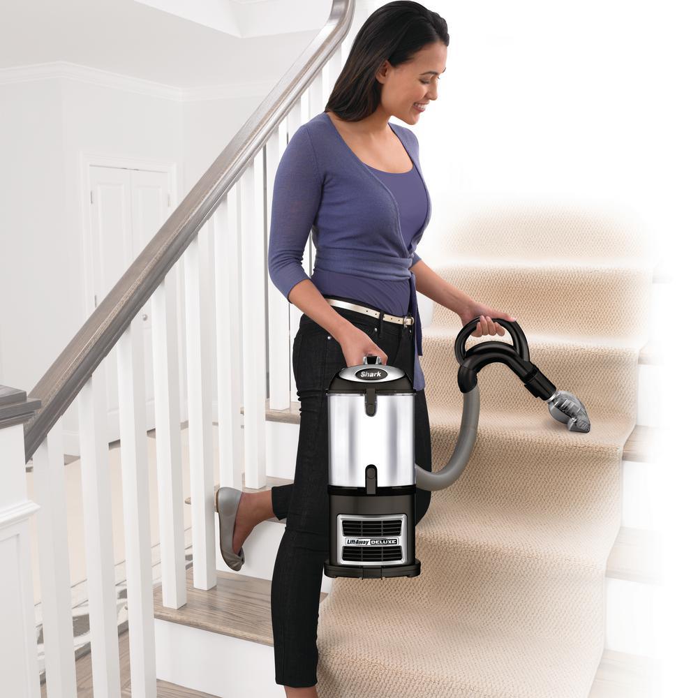 A lightweight 2-in-1 Lift-Away upright vacuum with a detachable canister for portable cleaning power. With the push of a button, Lift-Away technology allows you to lift the canister away and easily clean in hard-to-reach areas. This vacuum is also equipped with a large-capacity dust cup and a completely sealed system with a HEPA filter to trap dust and allergens. It also includes a Brushroll Shutoff button so you can easily switch between carpet and bare floor cleaning.
