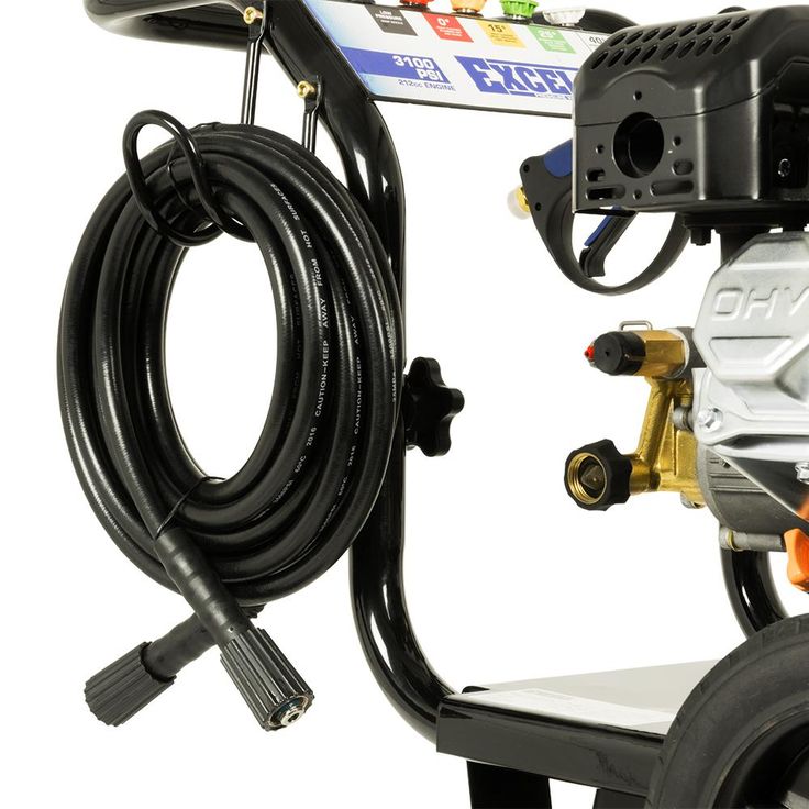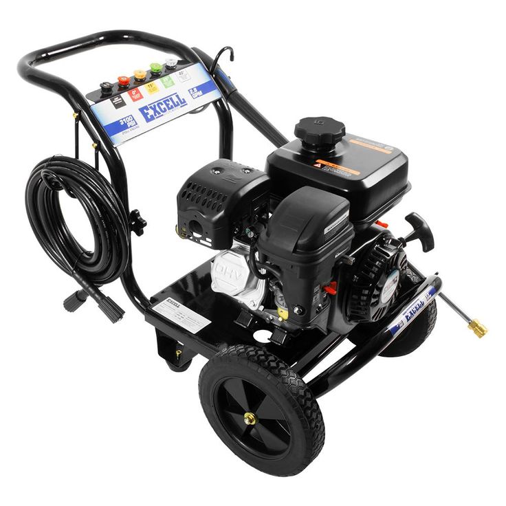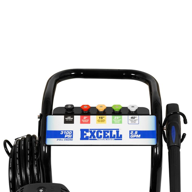 The high performance 212cc Excell OHV gas engine pressure washer is especially created for the home or shop to get jobs like washing cars, decks, siding and masonry done with efficiency and less effort. With 5 quick connect nozzle tips with color coding, it allows for easy identification and change for multiple cleaning applications. The unit also comes with an ergonomic rust resistant wand assembly with quick connect nozzle tip to provide greater comfort and reduce fatigue during cleaning. The low profile frame, 10 in. never flat wheels and reversible handle makes for compact storage and transport. From walls to floors, wood to concrete, trucks to RVs and beyond, tackle every tough job with one powerful, effective washing system.