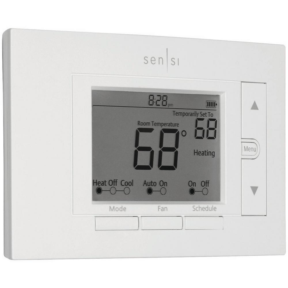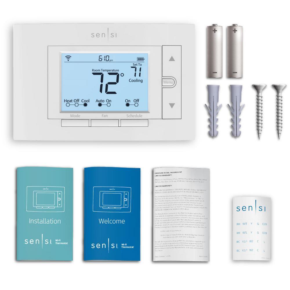 From across the room or across the country, your Sensi Wi-Fi thermostat makes it easy to remotely control and schedule your home comfort - Anytime. Anywhere. Sensi thermostat does not require a common wire (c-wire) for most installations, so it is compatible with the HVAC equipment in many homes in U.S. & Canada. A c-wire is required for heat-only, cool-only and heat pump (without aux) systems, and for use with Apple HomeKit. Check to make sure it will work for you at sensi.emerson.com/compatibility. Put your comfort on your terms with geofencing or 7-day scheduling option with the ENERGY STAR certified Sensi thermostat. Both energy saving features you save about 23% on your HVAC energy usage, so you can save money without compromising your comfort. Energy savings calculated by comparing operation time for a nationwide sample of Sensi users with temperature adjustments averaging 4°F vs. users with no adjustments. Savings vary based on equipment type/condition, insulation, climate & temperature adjustment size/frequency. Based on survey results of 2120 respondents that purchased and installed a Sensi thermostat in 2018, approximately 70% reported installing in 30 minutes or less. Adding a common wire may impact installation time. Does not work with electric baseboard heat and some other systems. System requirements for mobile app: iOS - 10.0 or above Android - 4.2 or above (5.0 or greater to use the Geofencing feature).