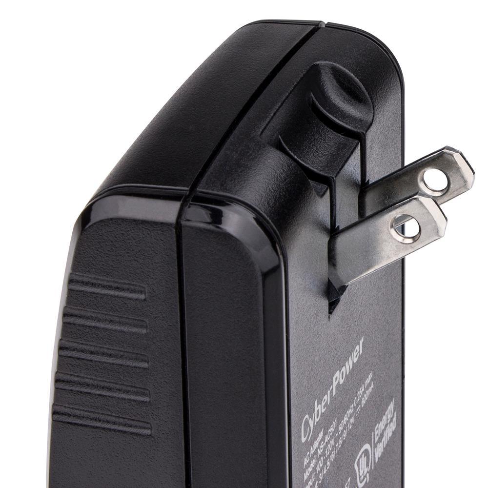 The CyberPower 2.1 Amp CPUAC1U1300 Universal Power Adapter functions as a replacement AC adapter or a substitute for batteries in portable radios, smartphones, midi equipment, electronic gaming systems, and home office equipment which uses up to 1300mA of power. Features include a folding AC plug, voltage selector, power cord (5 ft.), and a set of seven adapter tips compatible with many electronics. The CPUAC1U1300 comes with a 1-year limited warranty.