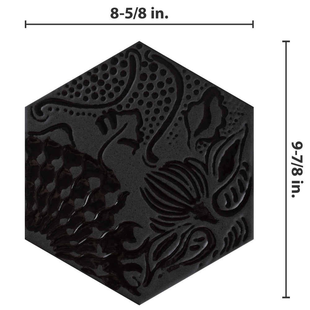 Gaudi Hex Black Porcelain Floor & Wall Tile, 8-5/8" x 9-7/8"