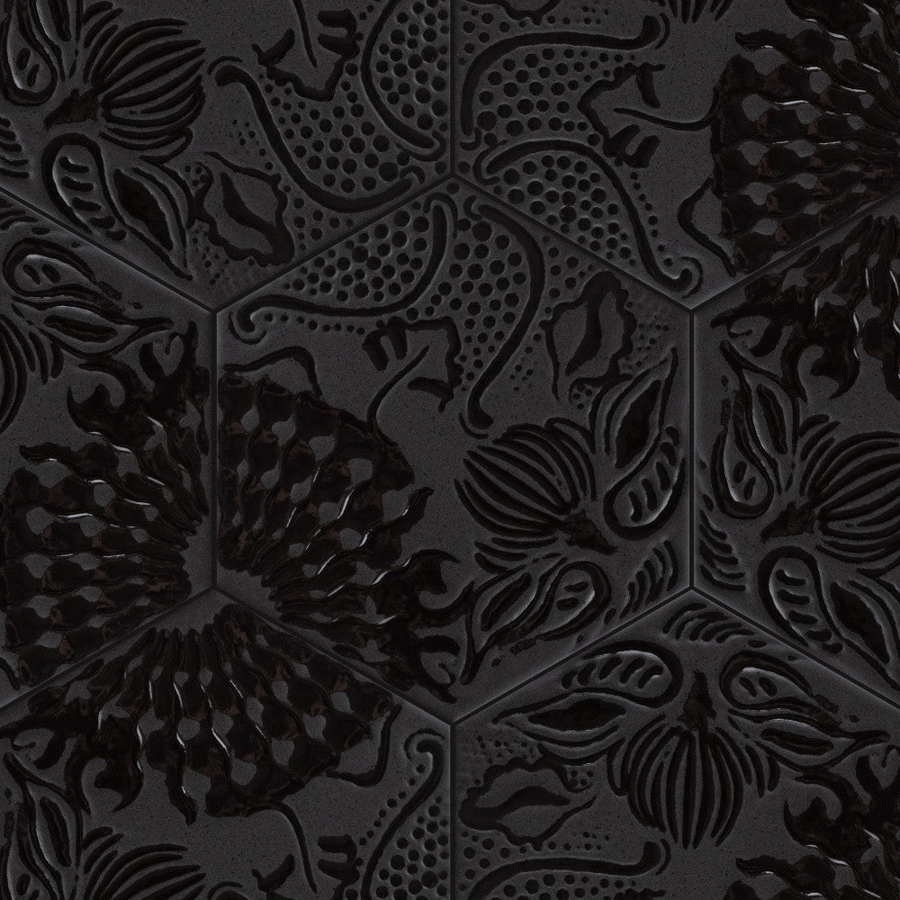 Bring bold texture and timeless style to your space—add Gaudi Hex Black to your project today.