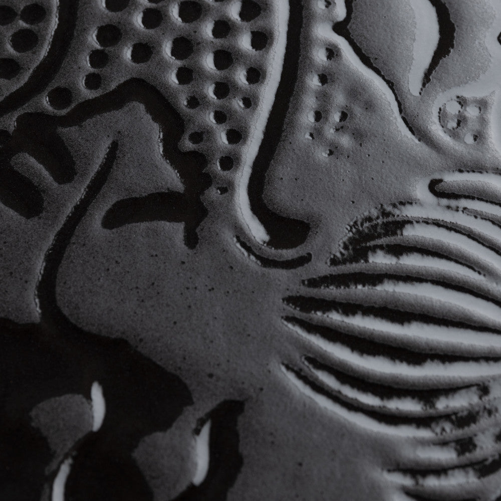 This black hex tile brings a sumptuous, sculptural texture that instantly elevates a room. The mixed finish glows subtly, catching light across its embossed motif for a modern-vintage moment. Style it as a dramatic kitchen backsplash or wrap a fireplace to create a luxe focal point. It’s an essential element for layered, sophisticated living.