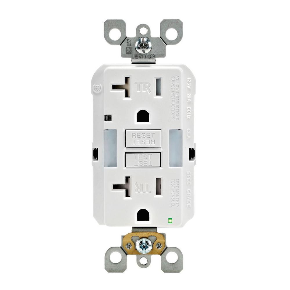 20 Amp Self-Test SmartlockPro Combo Duplex Guide Light and Tamper Resistant GFCI Outlet, White