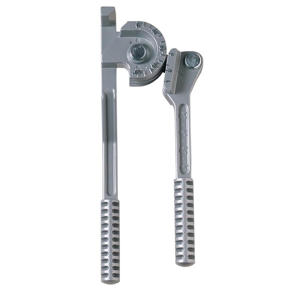 The General Tools Compound Tubing Bender allows you to make precise left, right and offset bends with a simple, hand-held mechanism. The calibrated angle markings indicate 15° increments from 0° to 45° for accurate results. The Compound Bender will bend copper, brass, thin wall tubing, steel, aluminum, soft wire and rods. The Bender features ergonomically designed handles for greater comfort, durable die-cast Alloy construction for light weight and extra-long handle for greater leverage. It easily handles 4-popular tubing sizes and comes in a convenient vinyl storage pouch. Great for HVAC, Plumbing, Hobbies or DIY projects.