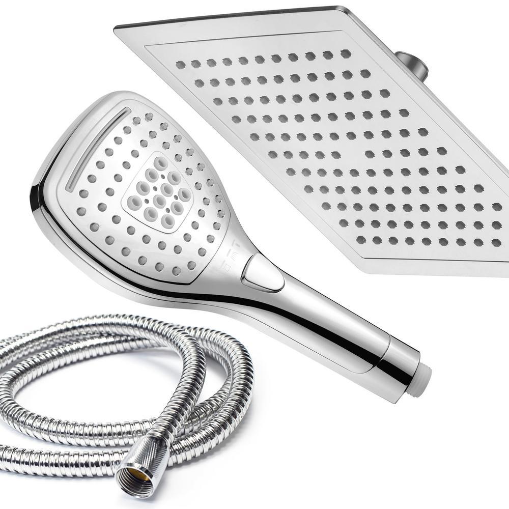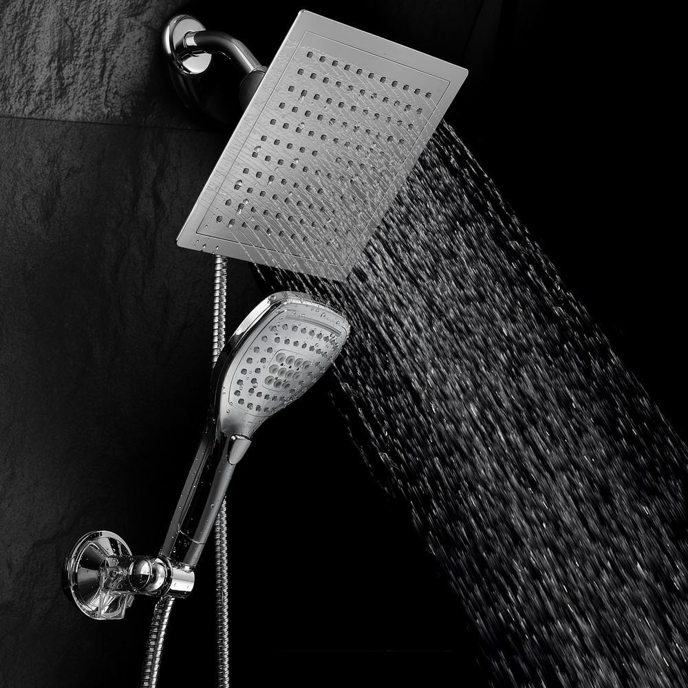 DreamSpa Ultra Luxury Rainfall Combo with Revolutionary Push Control Hand Shower with Oval Square shape in Polished Chrome. The extra-large 9 in. rainfall fixed showerhead gives you maximum body coverage for a luxurious shower. The large 4.75 in. hand shower adds versatility and convenience to your shower.
