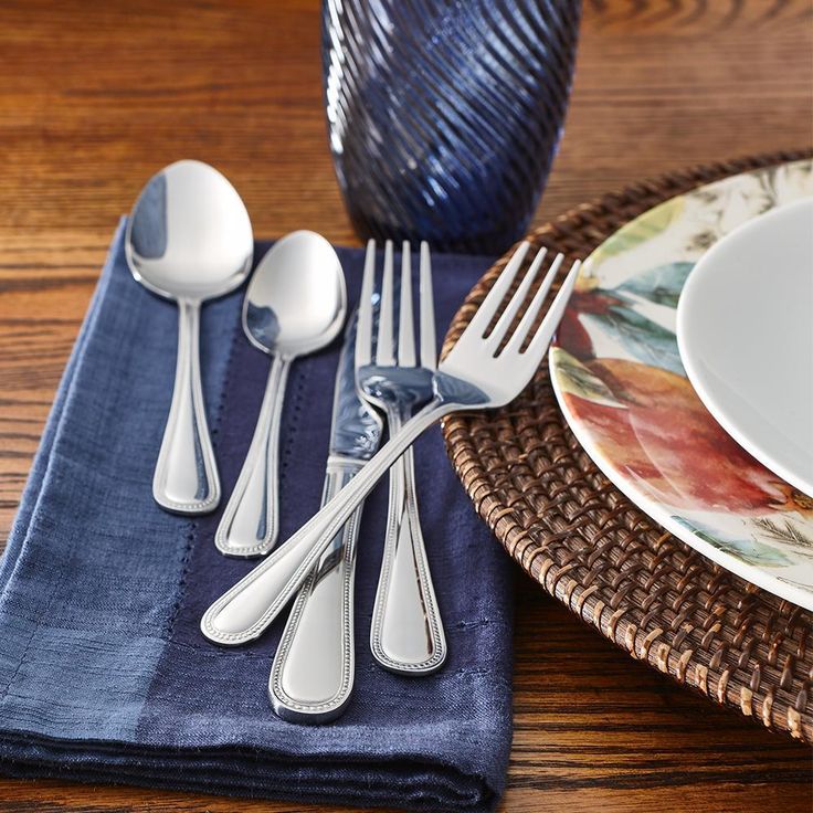 Beaded 46-Piece Silver Stainless Steel Flatware Set (Service for 8)