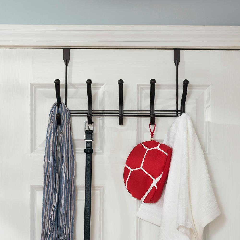 Hang and store Towels, coats, clothing, and other house hold items. Made from heavy duty bronze steel. Rust resistant. Hangs easily on any standard size door. Maximize your storage.