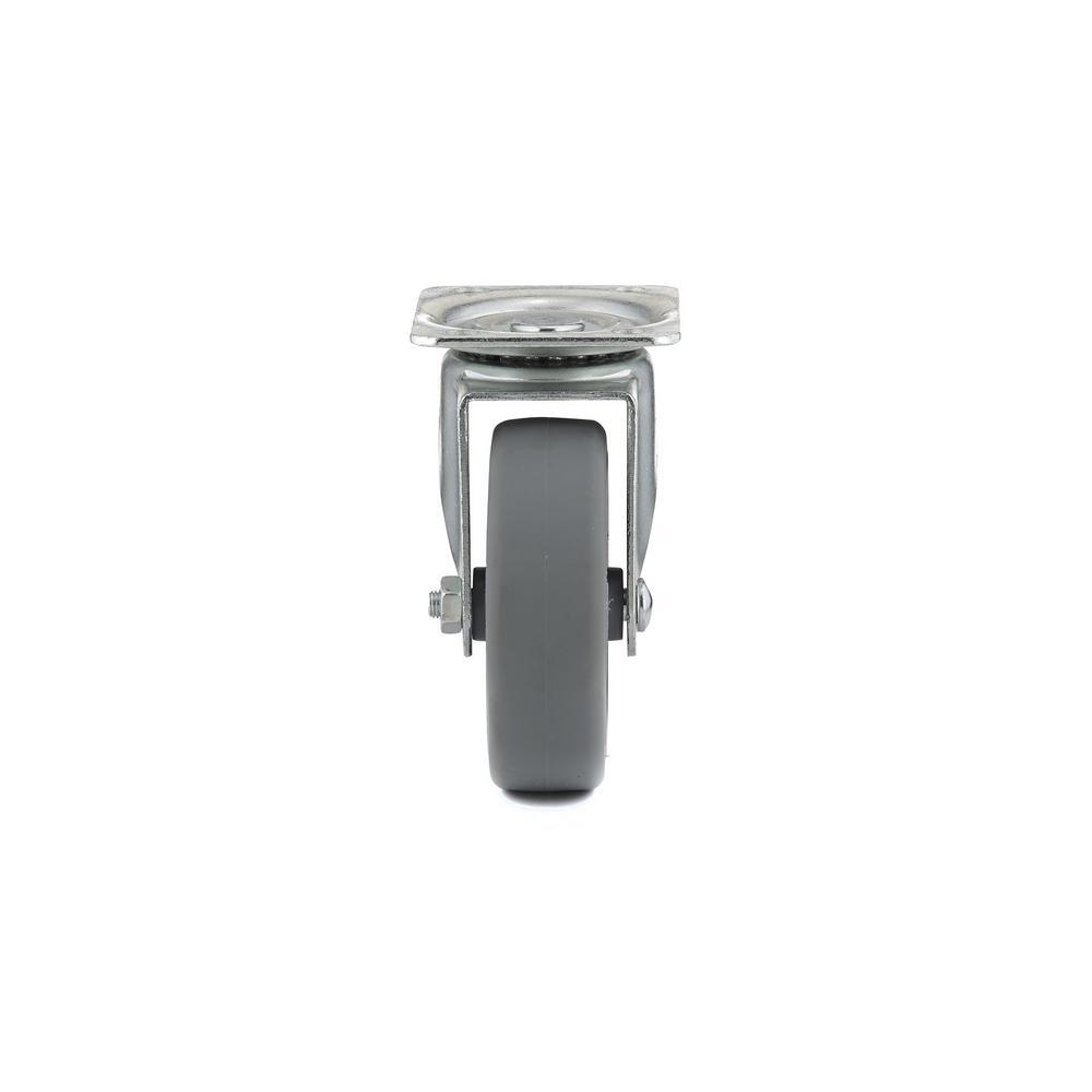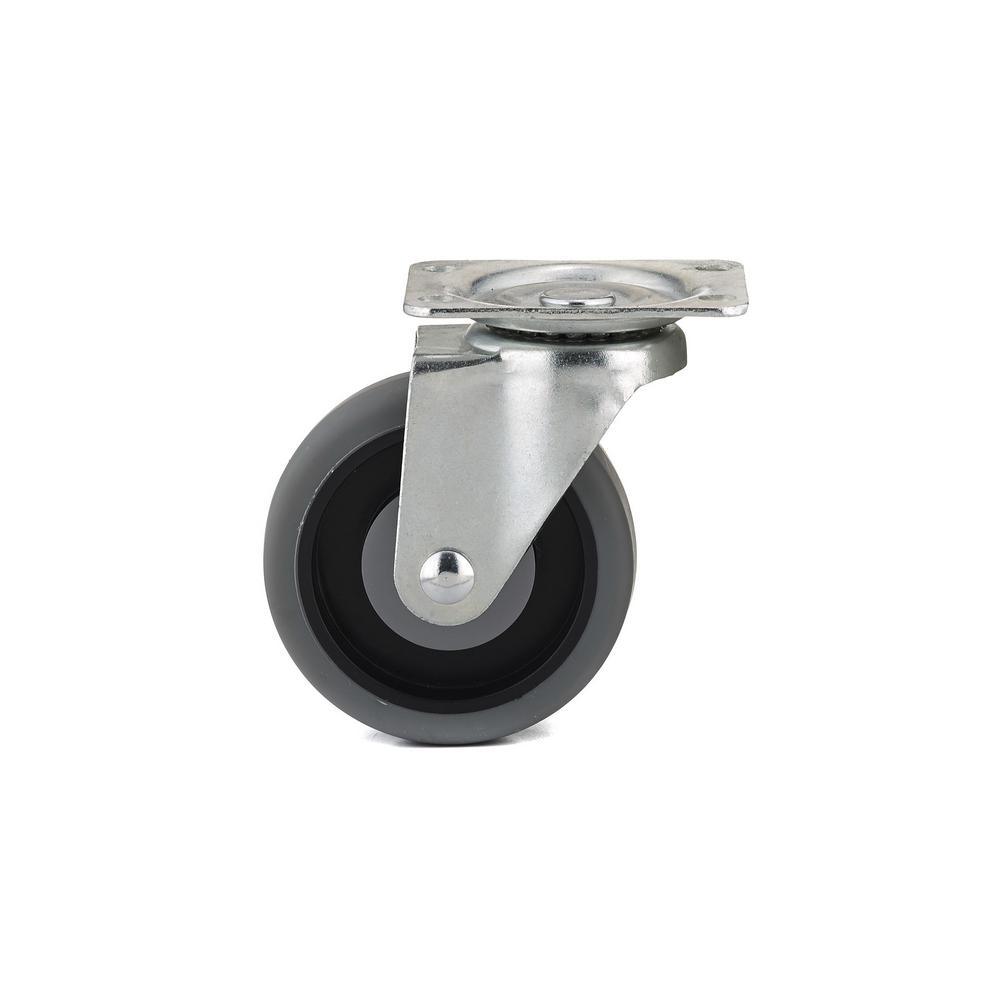 These heavy-duty casters are durable and designed for use in the most demanding environments. Non-marking rubber tread and corrosion-resistant zinc finish. Polypropylene rim resistant to nicks, scratches, stains, and deterioration. Thermoplastic rubber resistant to chemicals, caustics, oils, and wear.