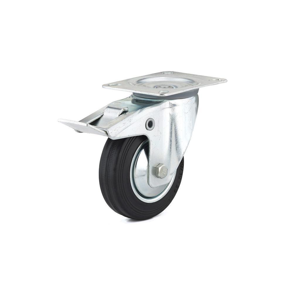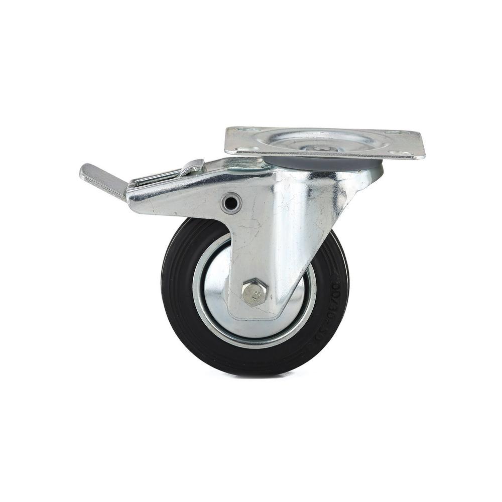 These heavy-duty casters are durable and designed for use in the most demanding environments. Double-lock braking system for both the wheel and the swivel. Metal thread guards, grease seal to hold lubricant and corrosion-resistant zinc finish. Fully seated ball bearing eliminates the need for axle lubrication, thus reducing maintenance costs. 2 independent rows of hardened, polished precision ball bearings roll freely in large-diameter lubricated raceways.