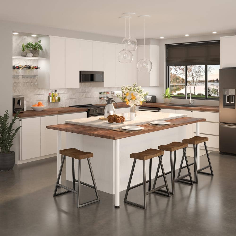 This refined round leg brings a crisp, architectural line to islands and high tables, allowing wood tops to float with effortless poise. The white finish punctuates warm materials beautifully, while the slim 2-3/8-inch profile keeps the look clean and contemporary. Style it flush with the table edge for a gallery-like silhouette or pair it with brushed metal accents for layered polish. It’s a chic essential that elevates everyday spaces with quiet luxury.