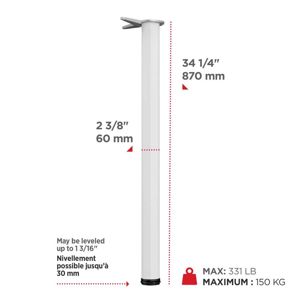 Durable Construction: Metal leg with white finish; 2-3/8 in. diameter