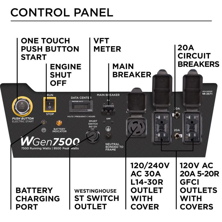 The Westinghouse WGen7500 Portable Generator is a powerful and easy-to-use power source to keep your home prepared for emergency events. It produces 9,500 peak watts and 7,500 running watts, operating for up to 11 hours on 6.6 Gal. (25 L) gasoline fuel tank. The WGen7500 features Push-Button Electric Start, conveniently pairing with a wireless remote key fob for effortless ignition. Forged with a cast iron sleeve, the WGen7500 has a 420cc 4-Stroke OHV Westinghouse Engine constructed for durability. It's equipped with a built-in fuel gauge, automatic low oil shutdown, and GFCI household outlets for added protection. The L14-30R outlet is Transfer Switch Ready, connecting straight to your home for total household power and eliminating the hassle for annoying extension cords or power strips. The WGen7500 is easy to care for with a VFT Data Center to share real-time updates on maintenance information, ensuring long life and lasting utility. A hardened-steel frame with added roll bars, foam grip handle, and never-flat wheels lets you easily transport this generator on the go while rubber outlet covers provide added protection from the environment. The WGen7500 is complete with a 3-Year Warranty and Lifetime Technical Support backed by our nationwide customer service and support network.