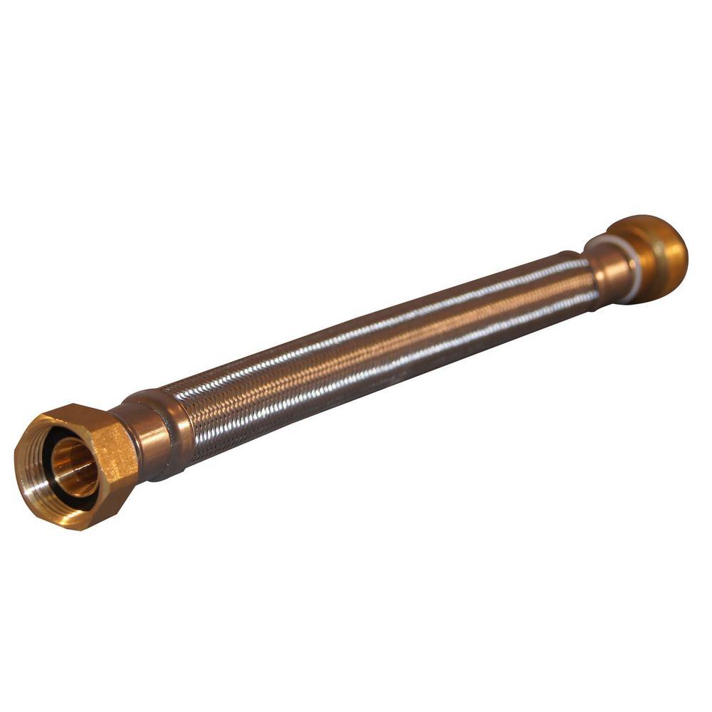 3/4 in. Push-to-Connect x 3/4 in. Female Pipe Thread x 12 in. Braided Stainless Steel Water Heater Connector was designed for the fast and simple installation of hot and cold water lines to water heaters. After applying pipe thread tape to the MNPT nipples on your water heater, thread the FNPT end of the Water Heater connector onto the tank and tighten with pliers. Then simply push the Tectite by Apollo Push-To-Connect end onto Copper, PEX, or CPVC pipes and your water heater is connected. The stainless steel braided connectors are available in different lengths from 12 in. - 24 in. (without Ball Valve) and are also available in Corrugated Stainless Steel.