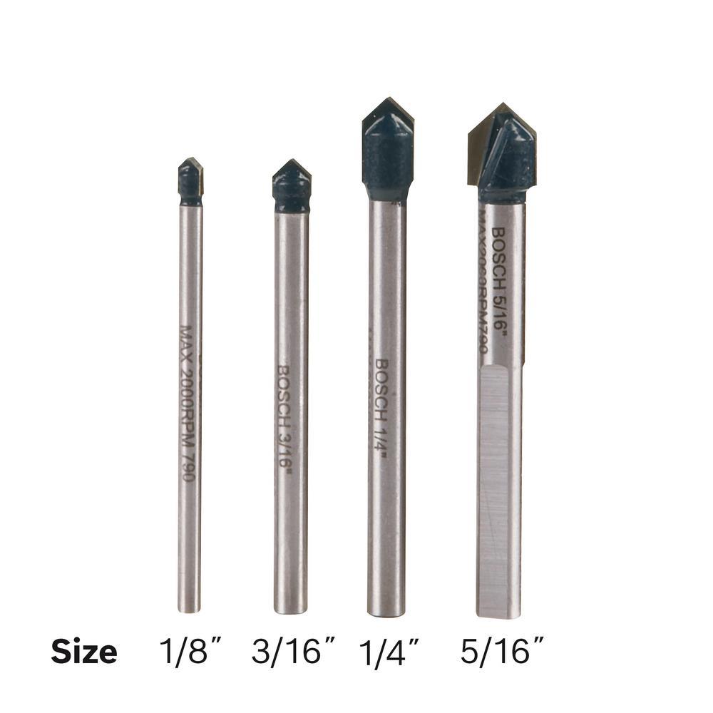 Glass and Tile Carbide Tipped Drill Bit Set (4-Piece)