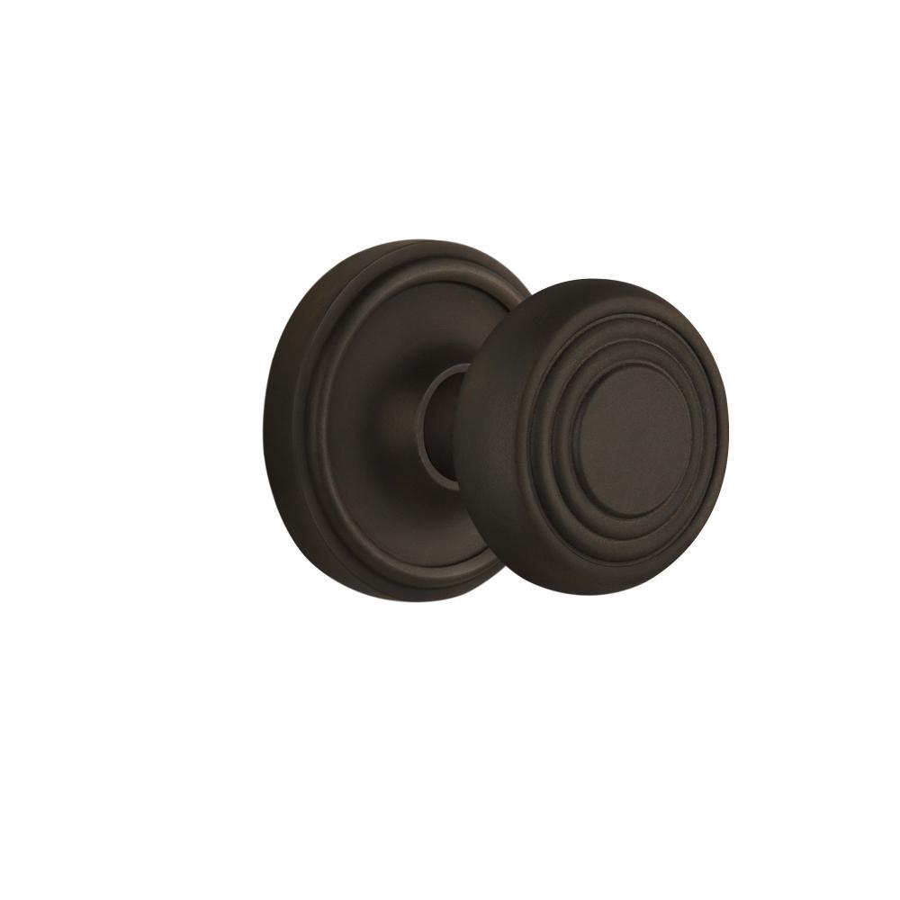 Classic Rosette 2-3/8 in. Backset Antique Brass Privacy Bed/Bath Deco Door Knob