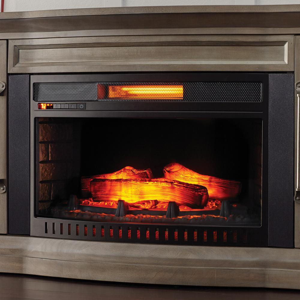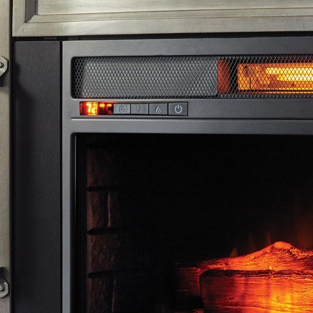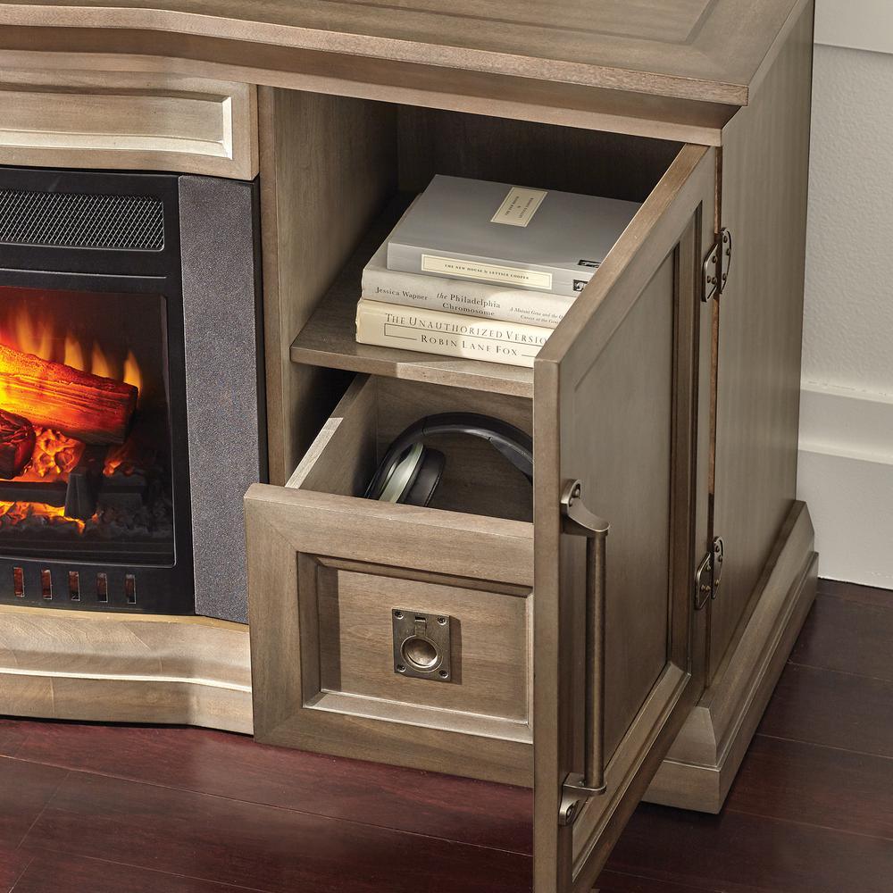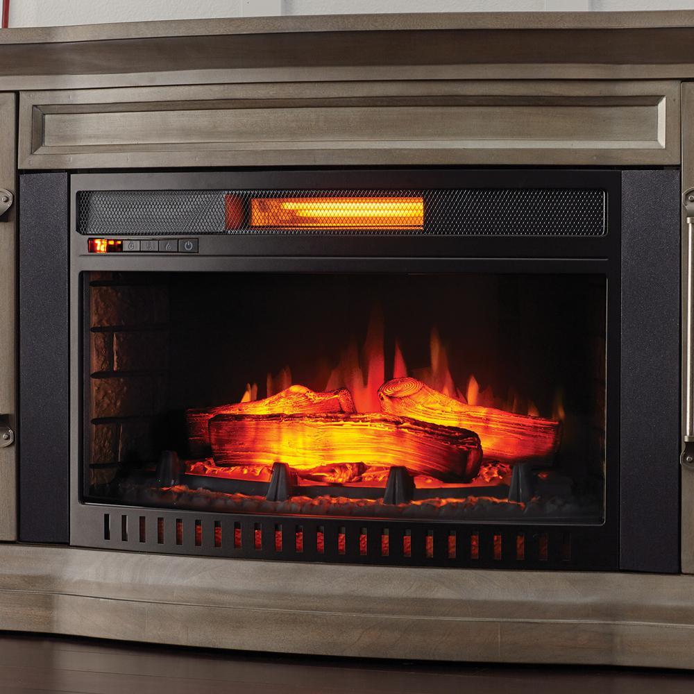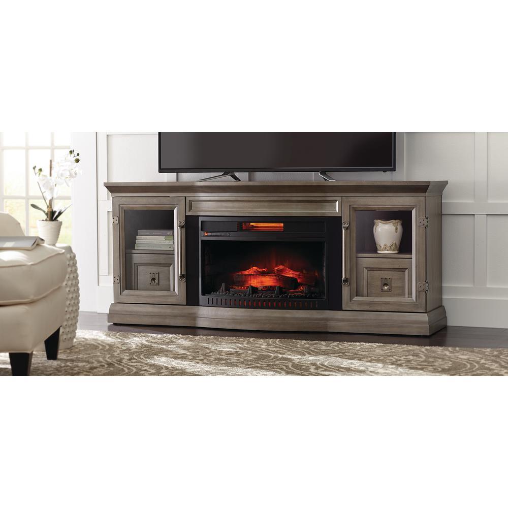 Cozy up to the warmth of a fireplace hearth in your living room, family room, dining room, or bedroom with the 65 in. CINDER LAKE Console Electric Fireplace. The 65 in. wide footprint makes this ideal for almost any room. You'll appreciate the quality construction consisting of hardwoods and laminates, finished in a rich gray. The CINDER LAKE Console offers realistic log and flames with energy efficient LED technology and four flame heights. Enjoy cozy fires year round with or without heat. With its 5,200 BTU infrared heater, the electric fireplace can warm even the largest rooms. Control the temperature range, 62° - 82° F and flame display with the handy remote control. The fireplace console can accommodate flat panel TVs and includes front panels for storing media and gaming accessories. With sound bar and Bluetooth, you can enjoy music to relax. Now any room can be a cozy haven with the CINDER LAKE Fireplace Console.