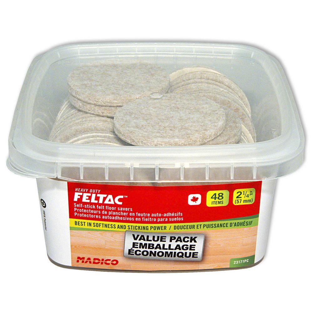 Feltac felt pads provide the best combination of softness, sticking power, durability, thickness, stability and color. The original, the best in floor protection. Sold in sets of 48 items.