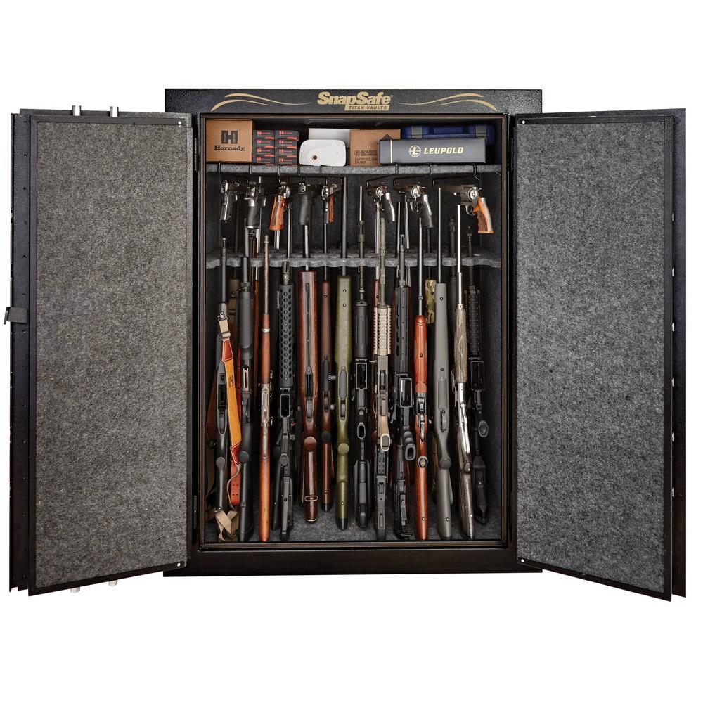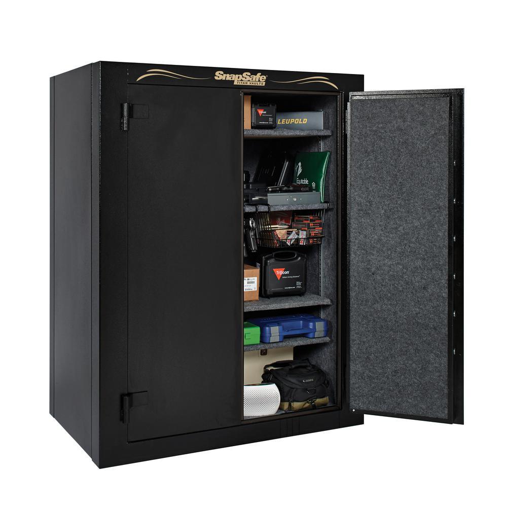 Offering all the security of a conventional welded safe, but is easy-to-assemble and move anywhere piece-by-piece. The SnapSafe modular assembly system locks the walls together from the inside and only requires a socket wrench for assembly. 8 live-locking bolts and a non-breech seal on the hinge side of the door provide professional grade protection not found in most residential safes. Once closed and locked, the vault cannot be disassembled from the outside. A heavy steel deadbolt runs the entire length of the hinge side of the door. Once locked, the door cannot be removed, even if the hinges are cut off. Your safe can be configured to fit a variety of needs. Each safe comes with 1 full shelf, 1 full gun rack, 2 half shelves and a divided shelf. Additional shelves can be purchased separately. Economical to ship. Easy to move and assemble. Your SnapSafe components are delivered right to your door. Simply unpack and move each piece to anywhere in your home or office and assemble in 30-minutes with the socket wrench that's included with each shipment. No need to hire movers or installers. Its an easy do-it-yourself project.