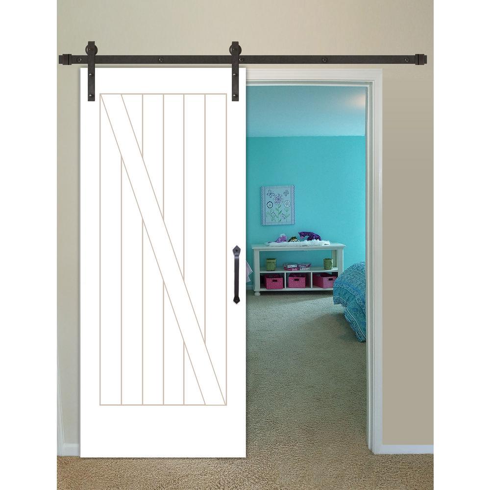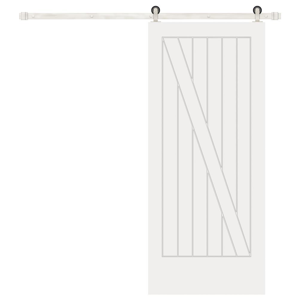 A beautiful way to enhance your dining, study, kitchen or bedroom areas, barn doors provides an elegant transition between spaces. This Pacific Entries 1-Panel Plank Shaker barn door is constructed with solid core engineered stiles and rails, with heavy 1/8 in. MDF plank skins and CNC carved MDF panel built for performance, durability and beauty for long years of enjoyment. 2-coats of primer ready for smooth paintable finish.