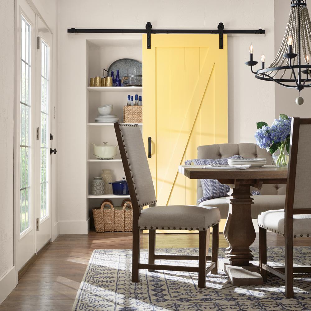 Door is predrilled for easy barn door hardware installation