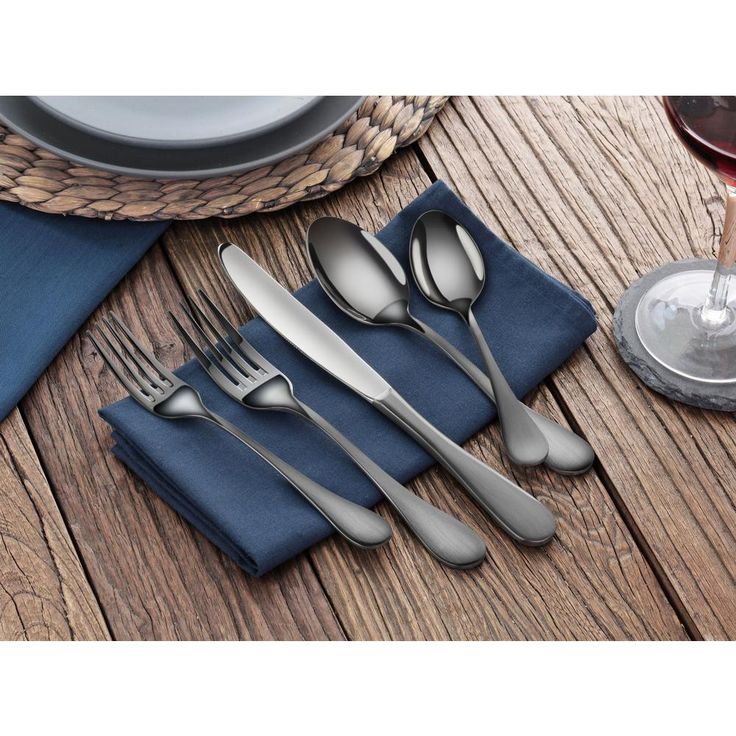 Rain 18/10 Stainless Steel Flatware 36-Piece Set, Black Finished, Service for 12