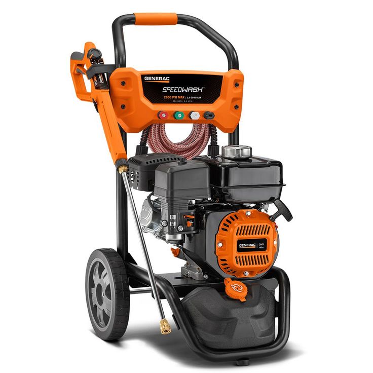 25 ft. high pressure flex hose, most flexible hose in the industry, kink resistant, non-marring powerful Generac 196 cc OHV engine delivers maximum cleaning performance