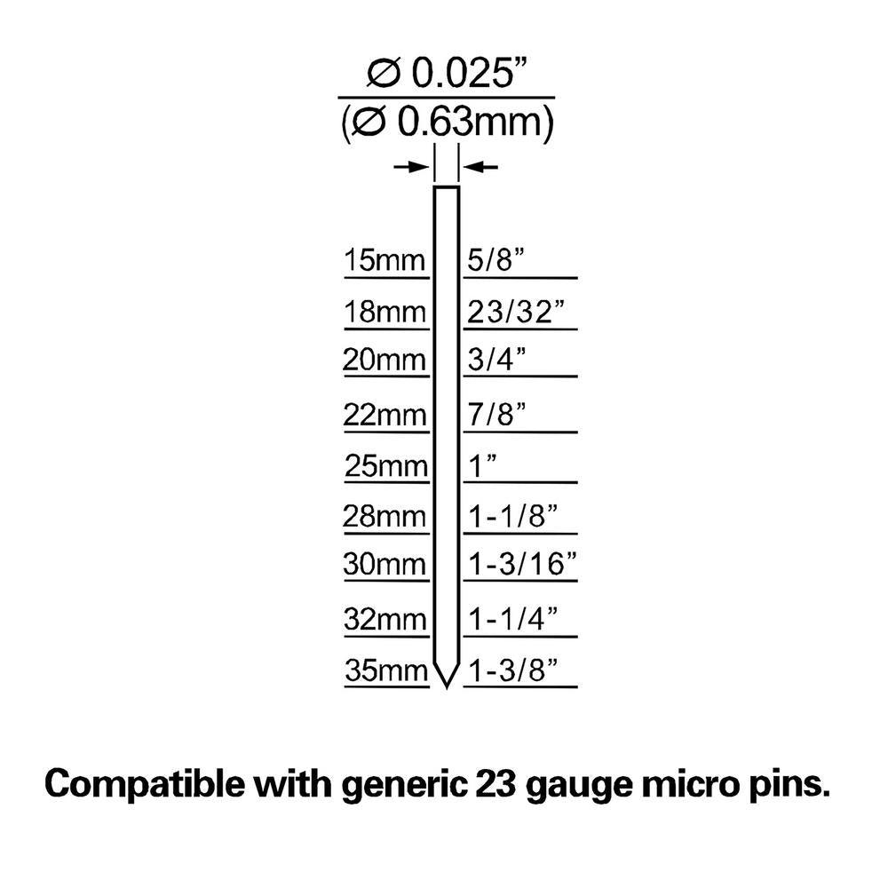 • Compatible with 23-Gauge headless pin nails from 5/8 in. to 1-3/8 in.