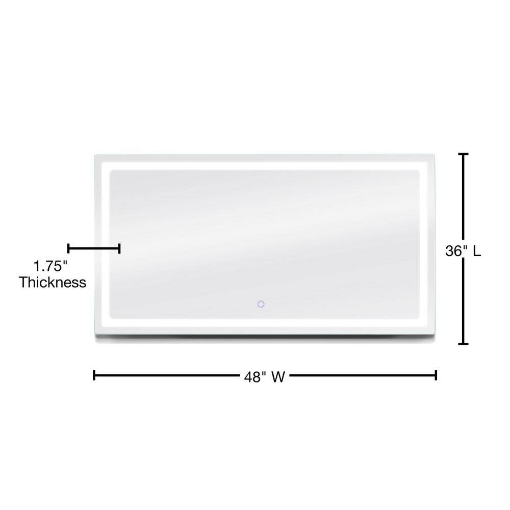 48x36 LED Backlit Vanity Bathroom Mirror with Touch Dimmer & Anti-Fog
