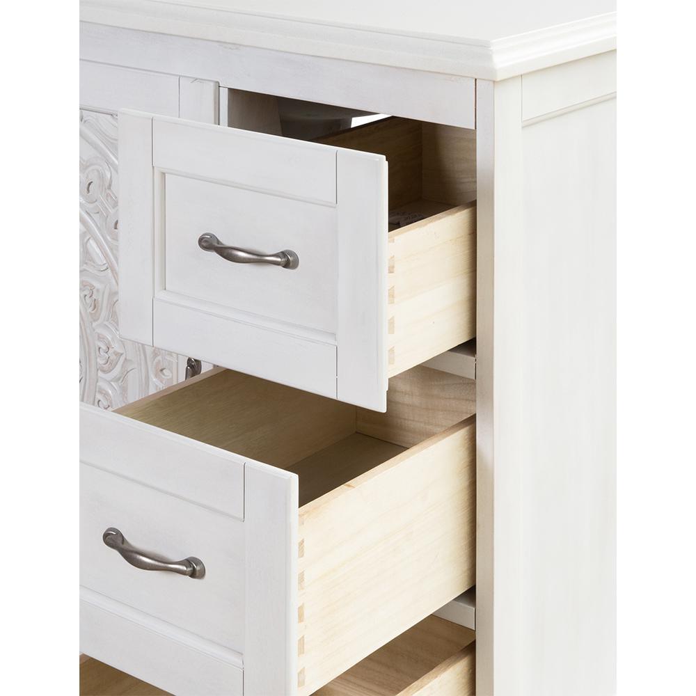 3-recessed-panel drawers featuring dovetail construction and ball-bearing glides