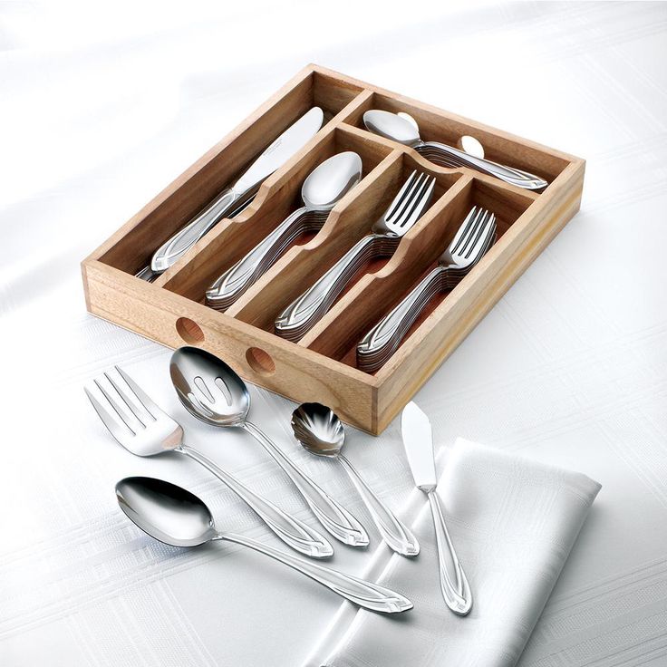 Lace Frosted 54-Piece 18/0 Stainless Steel Flatware Set with Wood Caddy (Service for 8)
