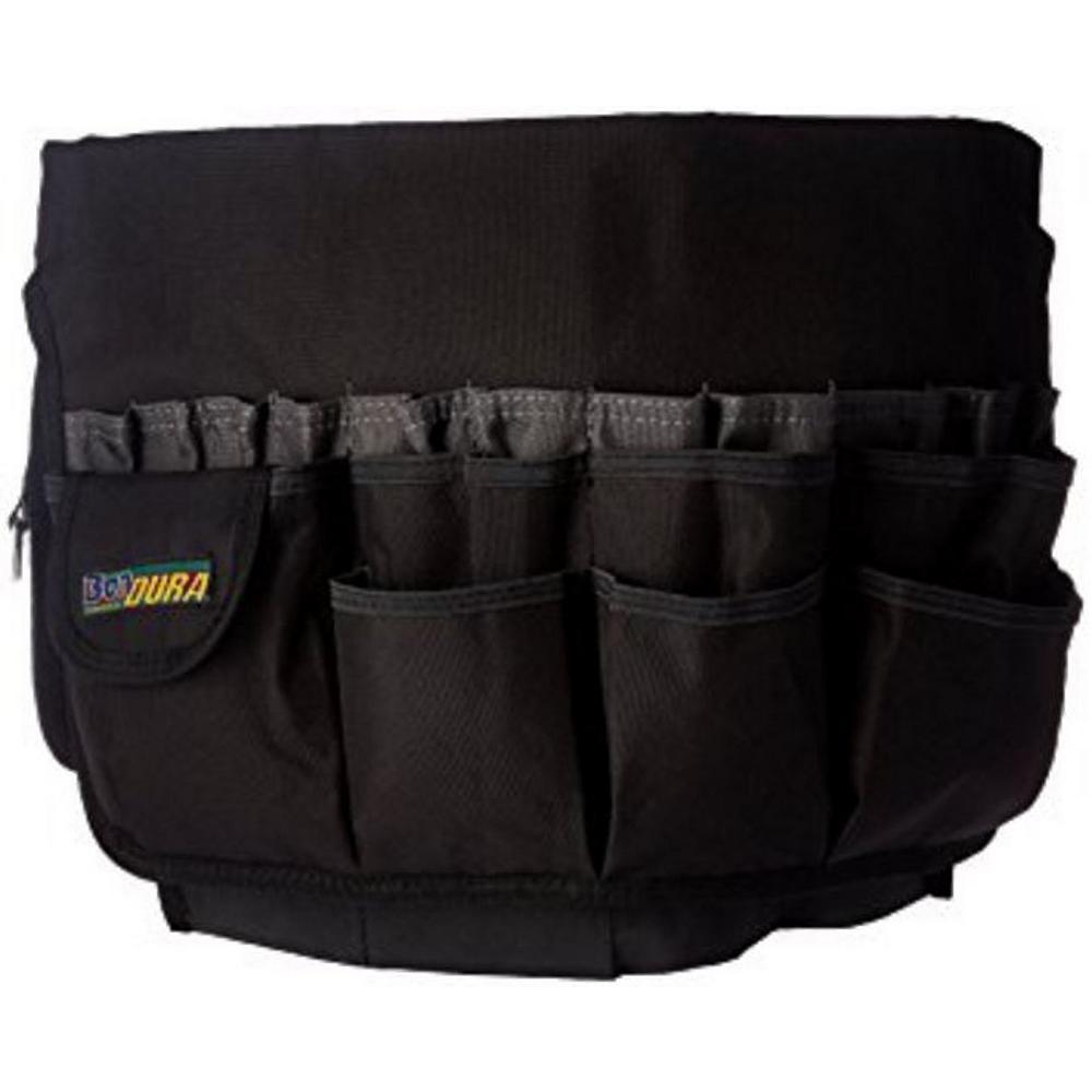 The Bon mega bucket tool bag is conveniently designed to fit over a 5 Gal. bucket (not included), which makes it extremely easy to transport. There are numerous pockets for organization of various tools. With strong material and innovative construction, this tool bag stands up to rugged wear.