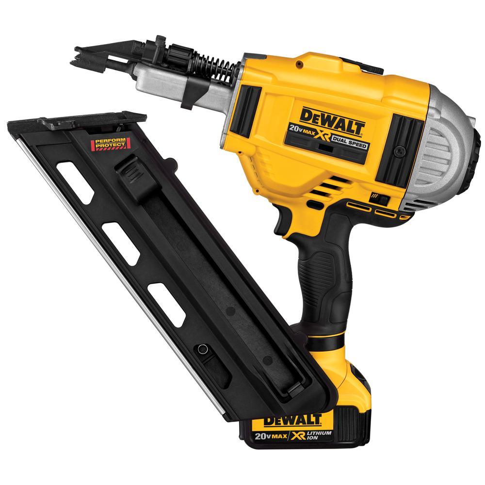 This brushless two-speed framing nailer features a lightweight design perfect for compact spaces. Weighing only 1.4 lbs., this cordless tool delivers consistent nail penetration into both soft and hard joints without the hassle of fuel or loud compressors. It accepts any 30- to 34-degree paper tape framing nail. Remove jammed nails with ease and disable the tool when not in use with the trigger lock-off. This nailer includes a bonus 5.0ah battery pack.