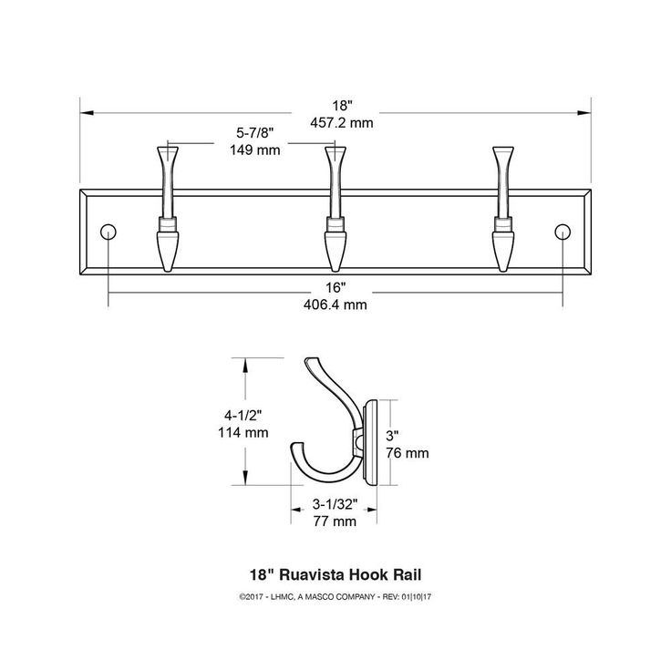 Constructed of durable die-cast zinc hooks mounted to a high quality medium density fiberboard (MDF) rail