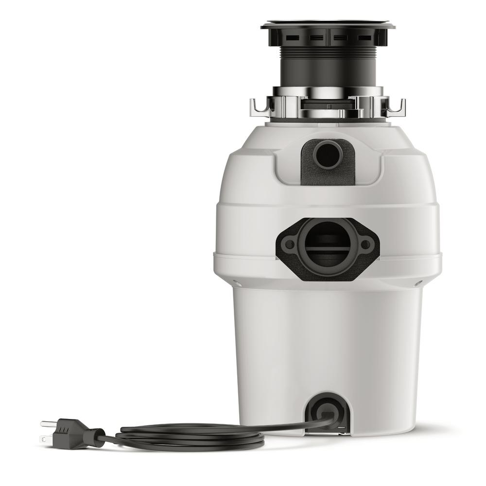 Manual reset overload protector located conveniently in front of the disposal