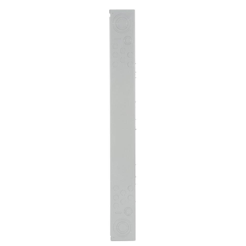 Mounting tabs on the trim hold it in place on the load center, freeing up both hands to drive the trim screws