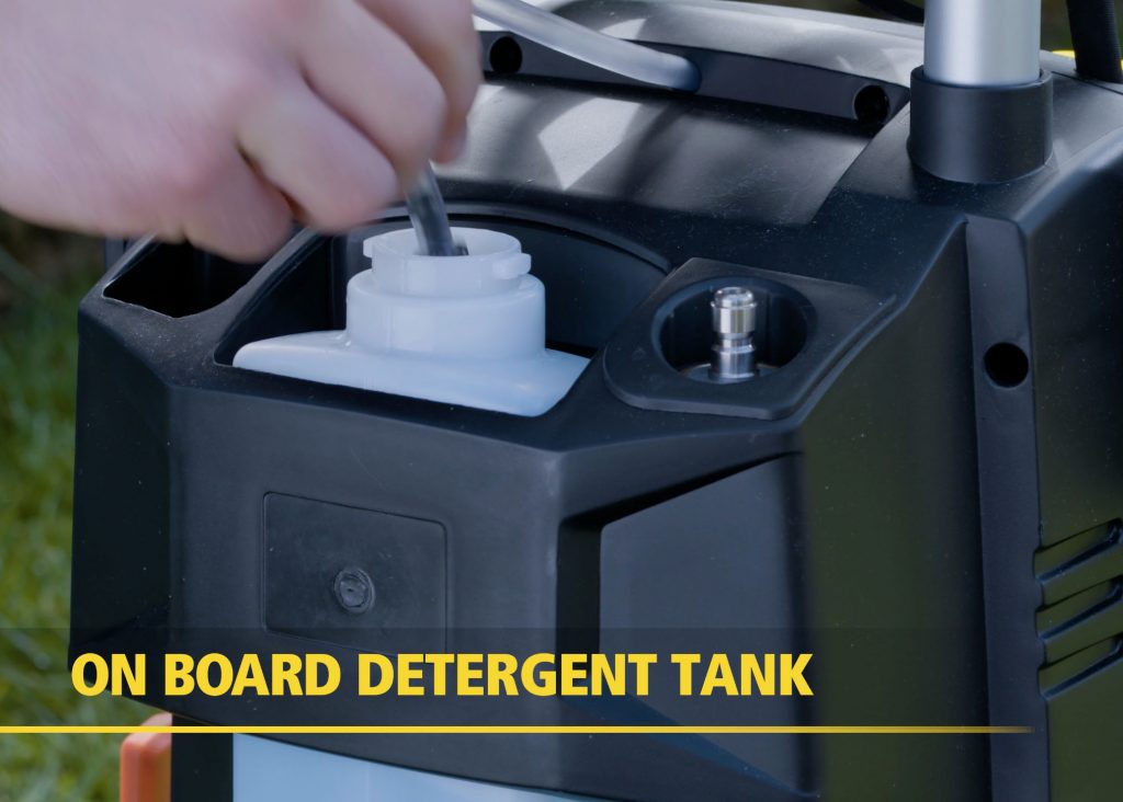 • Onboard Storage: Integrated 30 ft high-pressure hose reel and 48 oz removable detergent tank