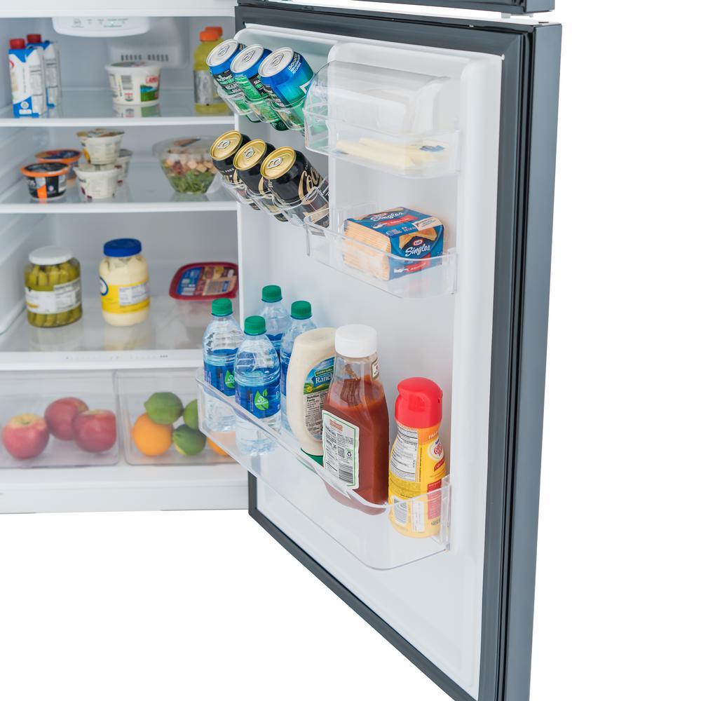 Clear door bins and bottle rack keep your condiments and larger bottles easily accessible