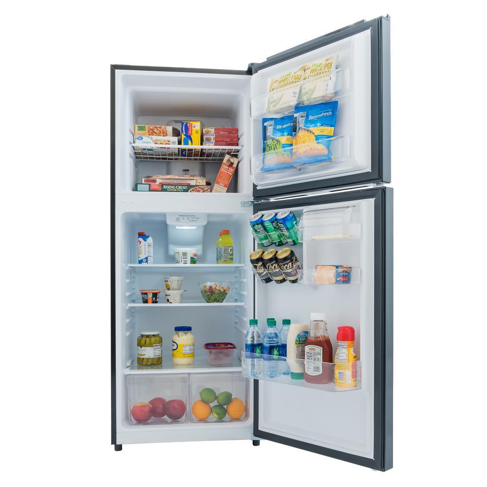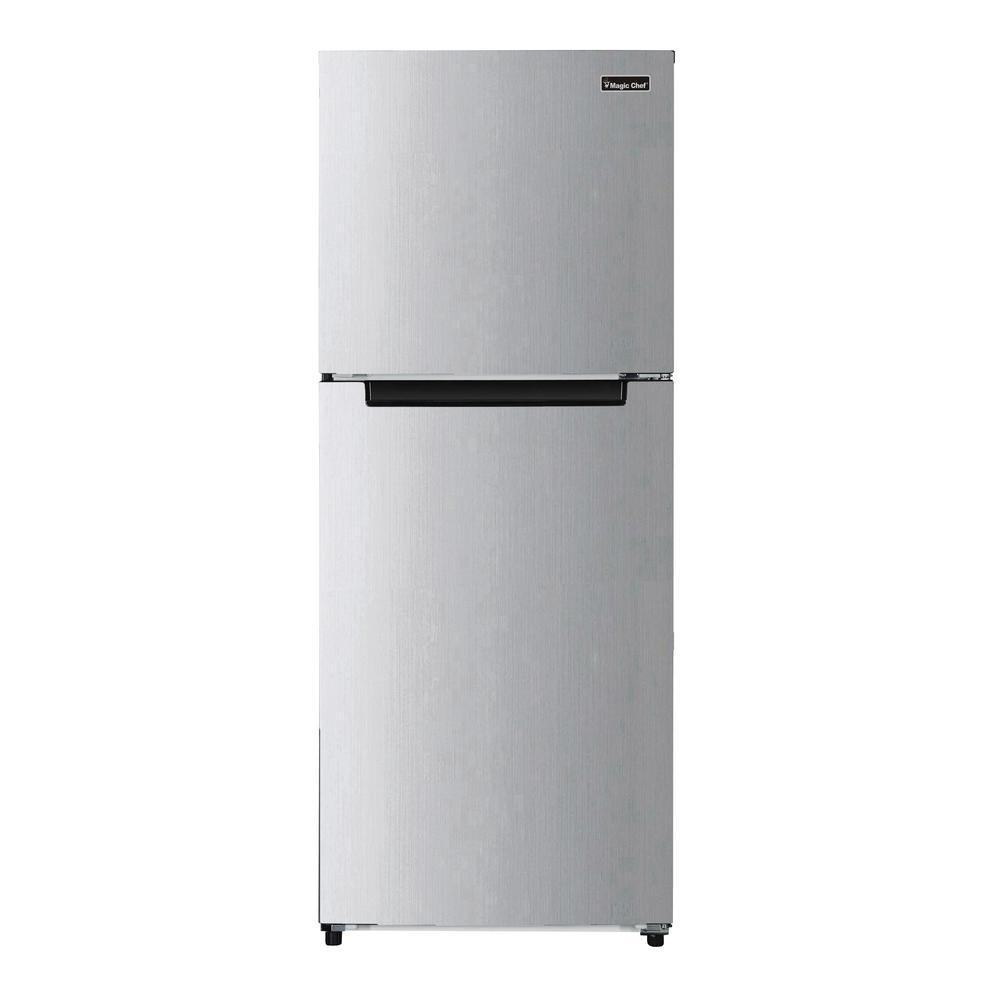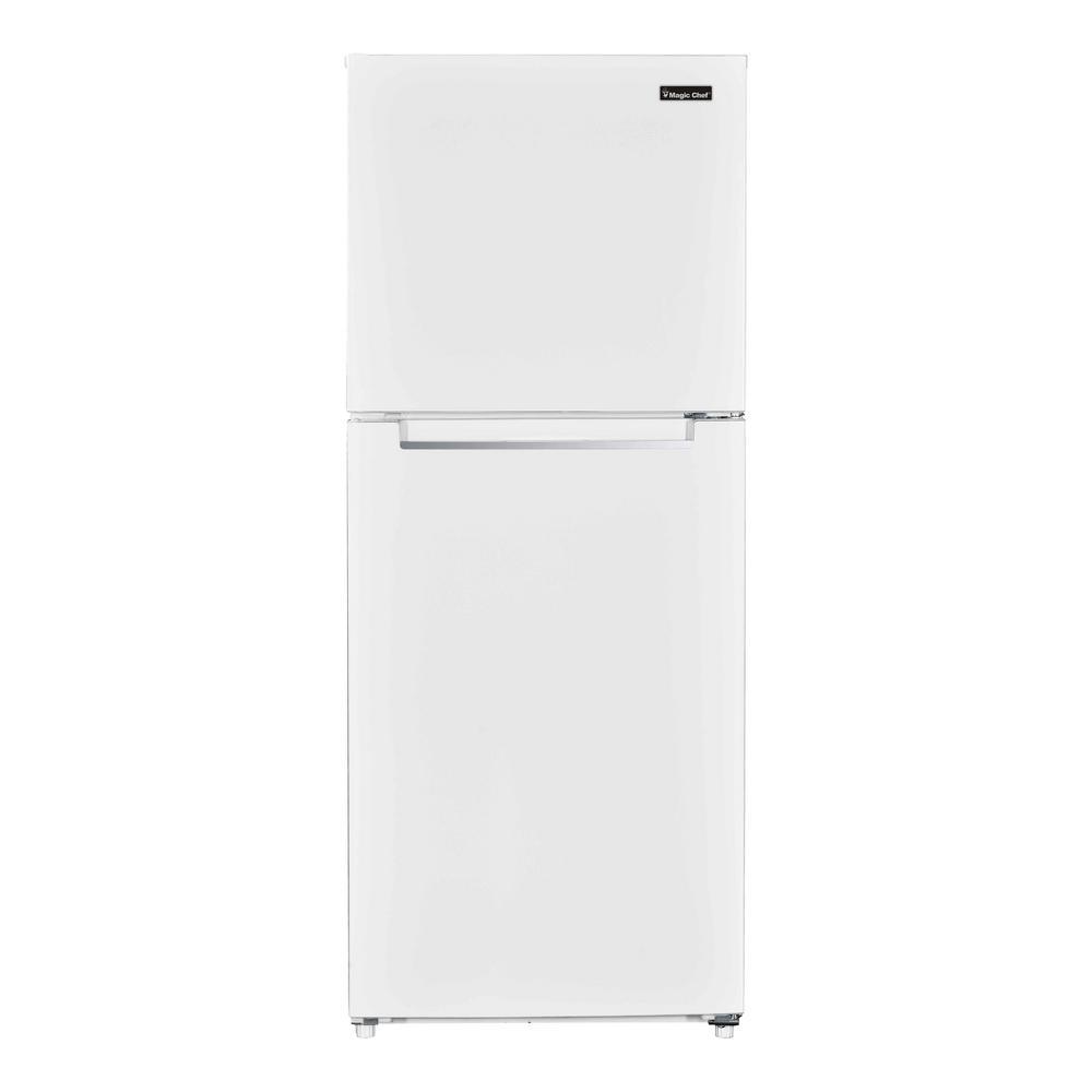 The Magic Chef 10.1 cu. ft. Top Freezer Refrigerator is the perfect in-between cooling machine more spacious than a mini but more compact than a regular household unit. It is a suitable appliance for smaller kitchens, break rooms, office kitchenettes or anywhere with space constraints. It occupies a small footprint but offers numerous cold-storage options for foods and beverages, including a glass-covered crisper to keep produce fresh. It's equipped with two adjustable-height glass shelves in the refrigerator and one wire shelf in the freezer, with several other storage options built into the reversible doors.