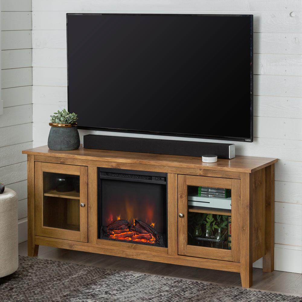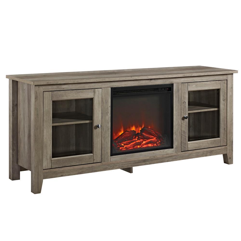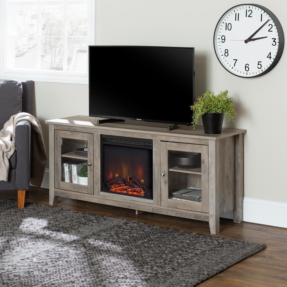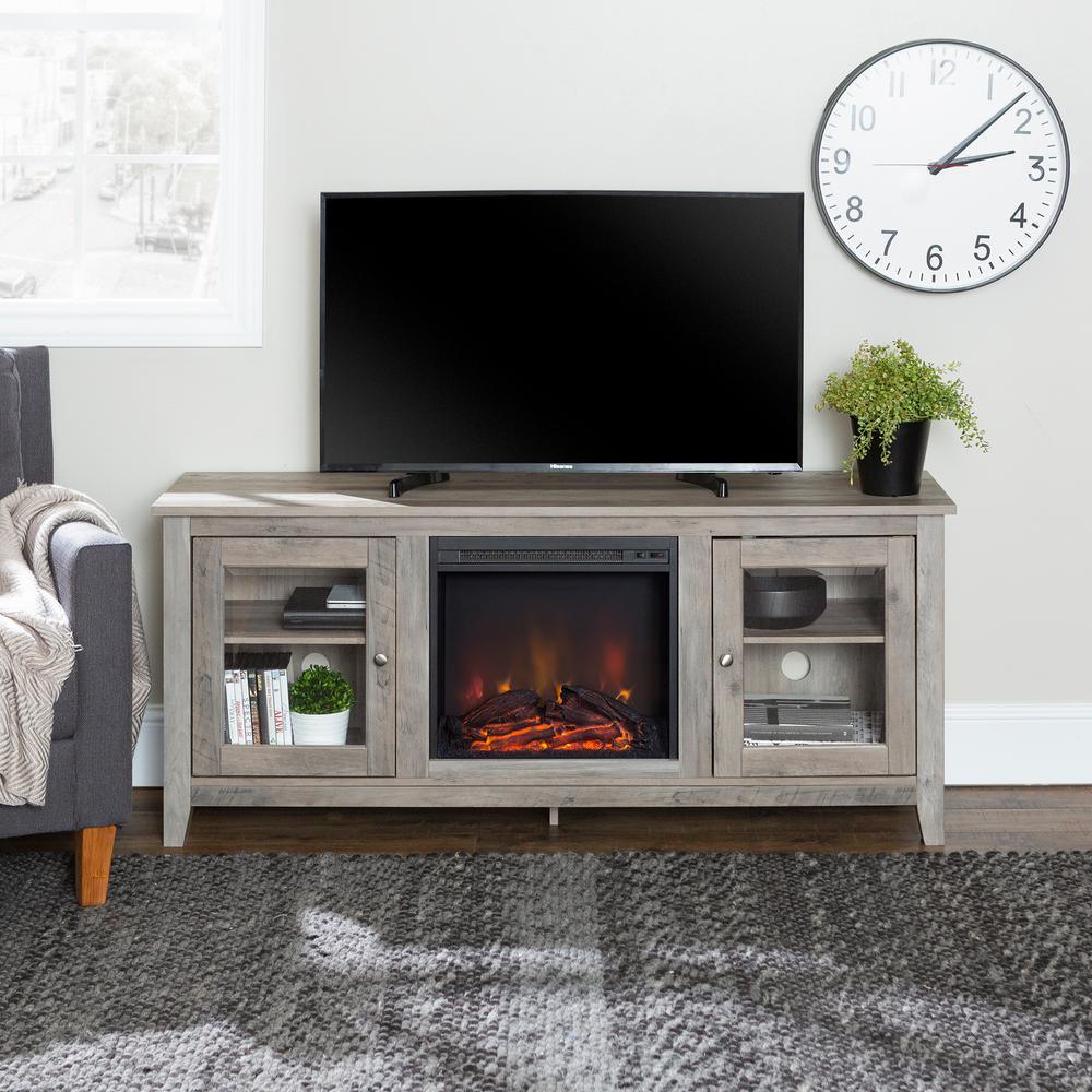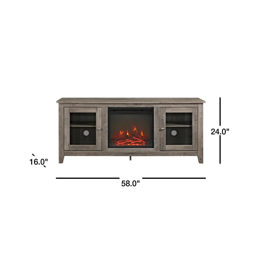 58 in. Wood Media TV Stand Console with Fireplace - Grey Wash