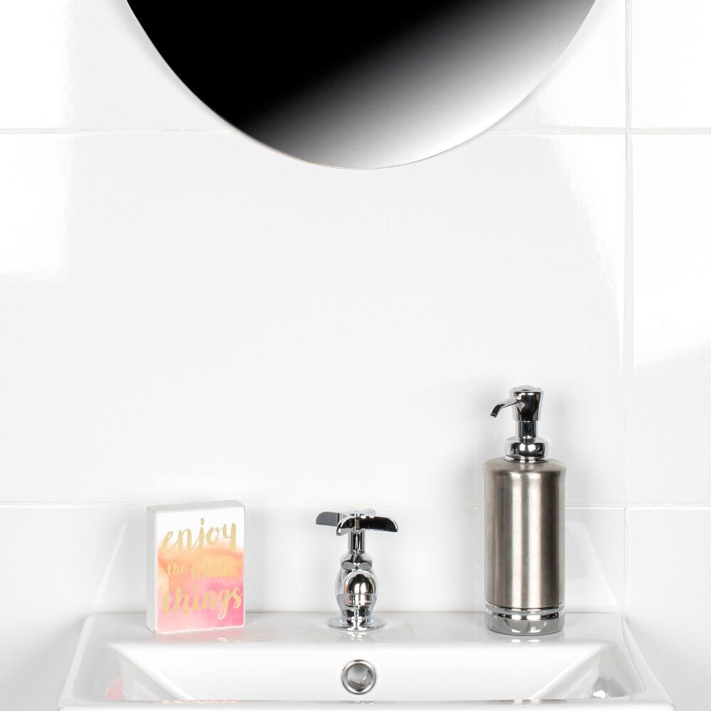 Solido Blanco Brillo brings a luminous, mirror-like sheen that instantly elevates walls with crisp, gallery-white polish. Its large, streamlined format reduces visual noise, creating a serene canvas that pairs beautifully with chrome accents and dark trims. Try a stacked layout from vanity to ceiling for a sleek spa effect, or frame niches with contrasting borders for graphic impact. This glossy essential is the epitome of refined, luxurious simplicity.