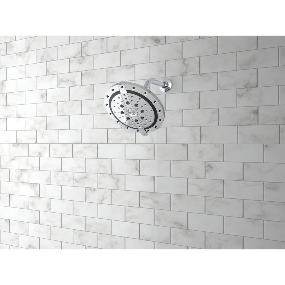 Experience total rejuvenation with the K-R29597 showerhead. Switch between six transformative spray settings with the push of a button. Energy in every drop: experience total rejuvenation with the KOHLER R29597 Recharge showerhead. Switch between six transformative spray settings with the push of a button: Full Coverage, Silk, Silk+, Silk + Massage, Massage, and Massage+. Whether you want a soft, relaxing rinse, a targeted water massage, or a full-on rain shower with large drops, the Recharge showerhead delivers your preferred experience.