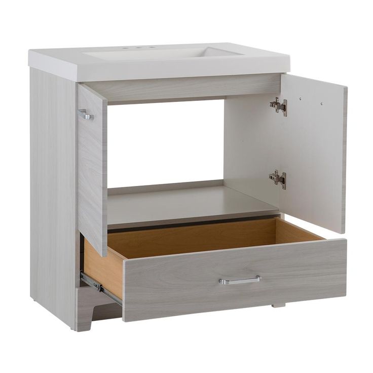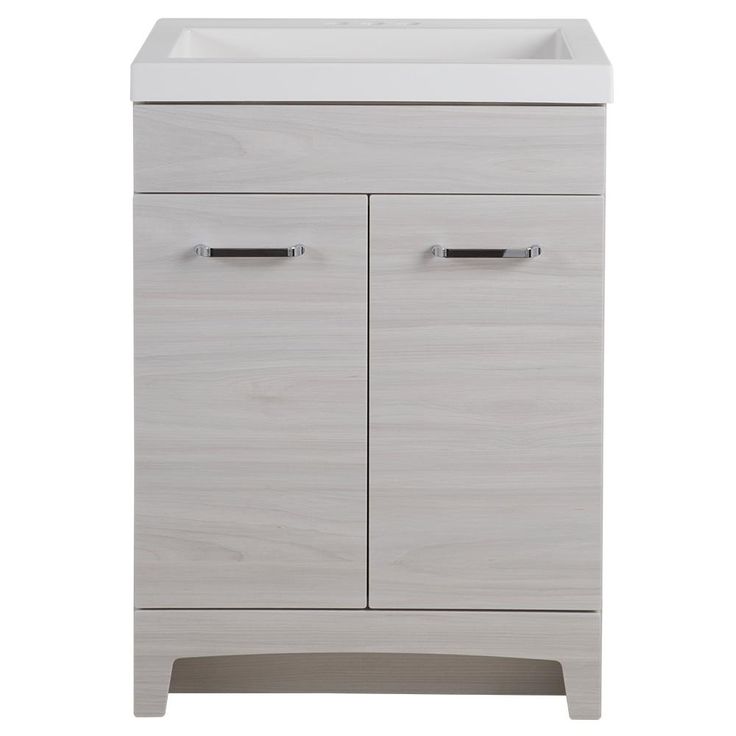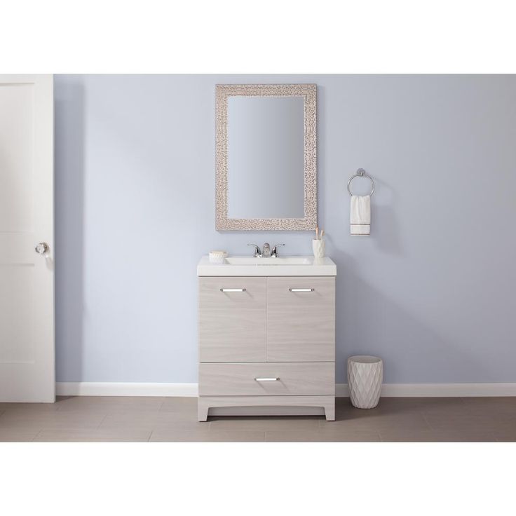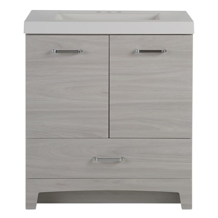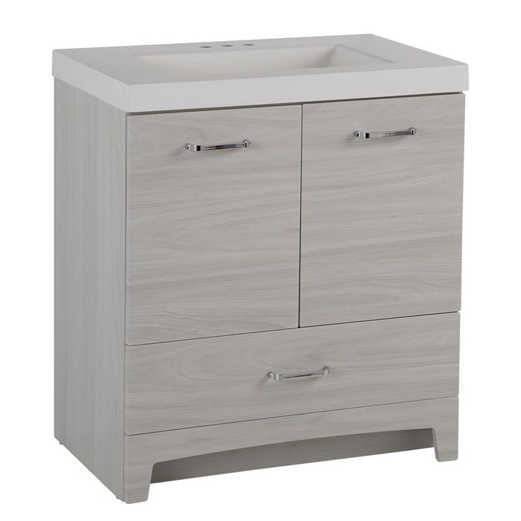 Ideal for the modern home, the Glacier Bay Stancliff vanity in an Elm Sky finish and Solid White vanity top is a contemporary-style vanity combo adorned with 2 modern flat slab panel doors and bottom drawer for all of your bath needs. The 30.50 in. Stancliff vanity feature a light, white-gray Elm Sky coloring with a natural wood-grain like rigid thermofoil finish and a uniquely designed cultured marble integrated rectangular bowl. Paired with 2 brilliant polished chrome pulls, the Stancliff vanity will effortlessly pull your bathroom together.