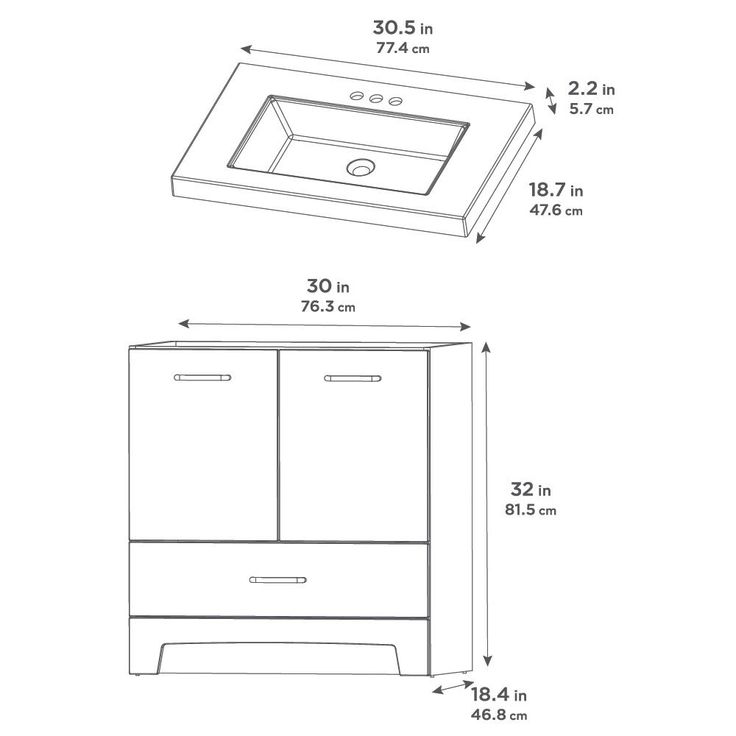 Assembled dimensions are 30.50 in. W x 18.75 in. D x 34.34 in. H