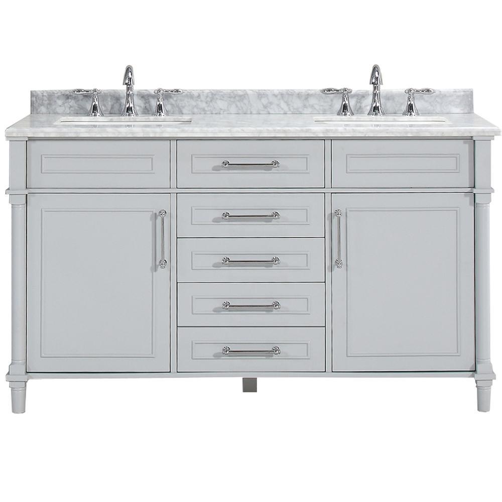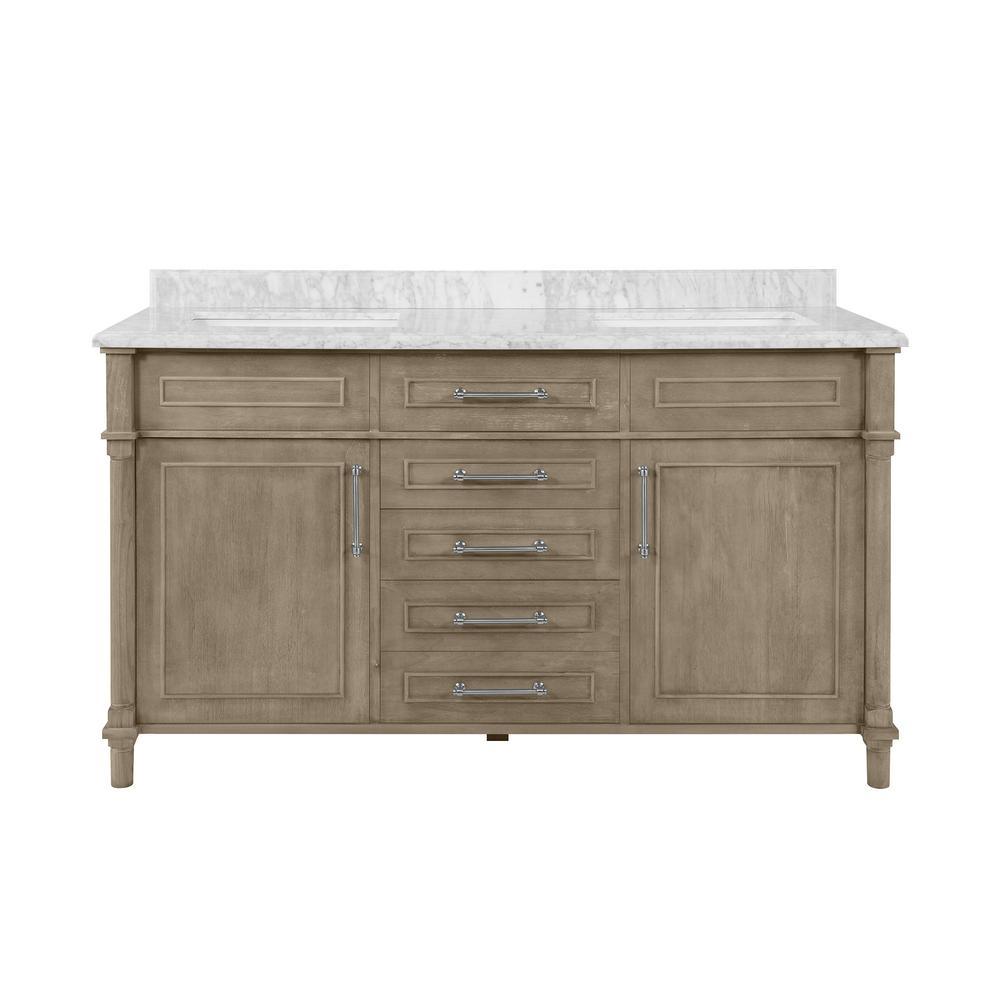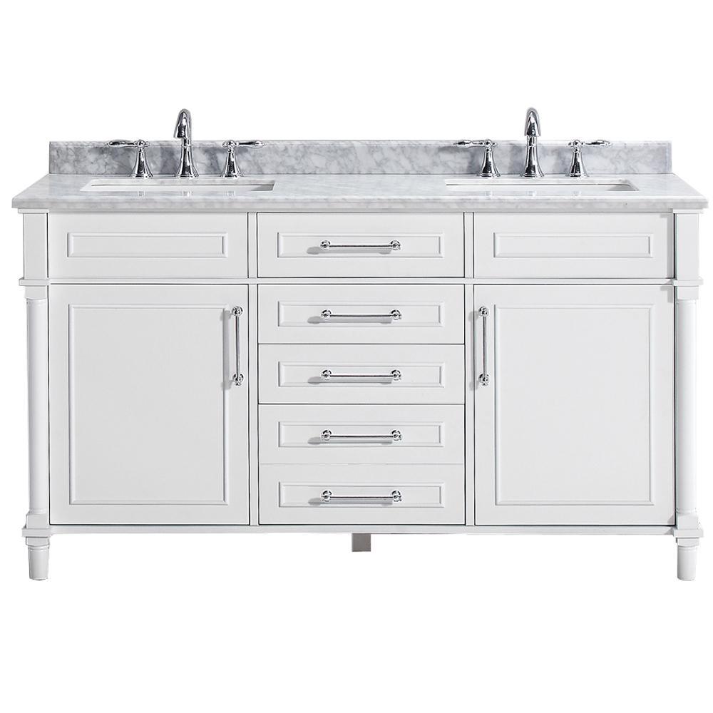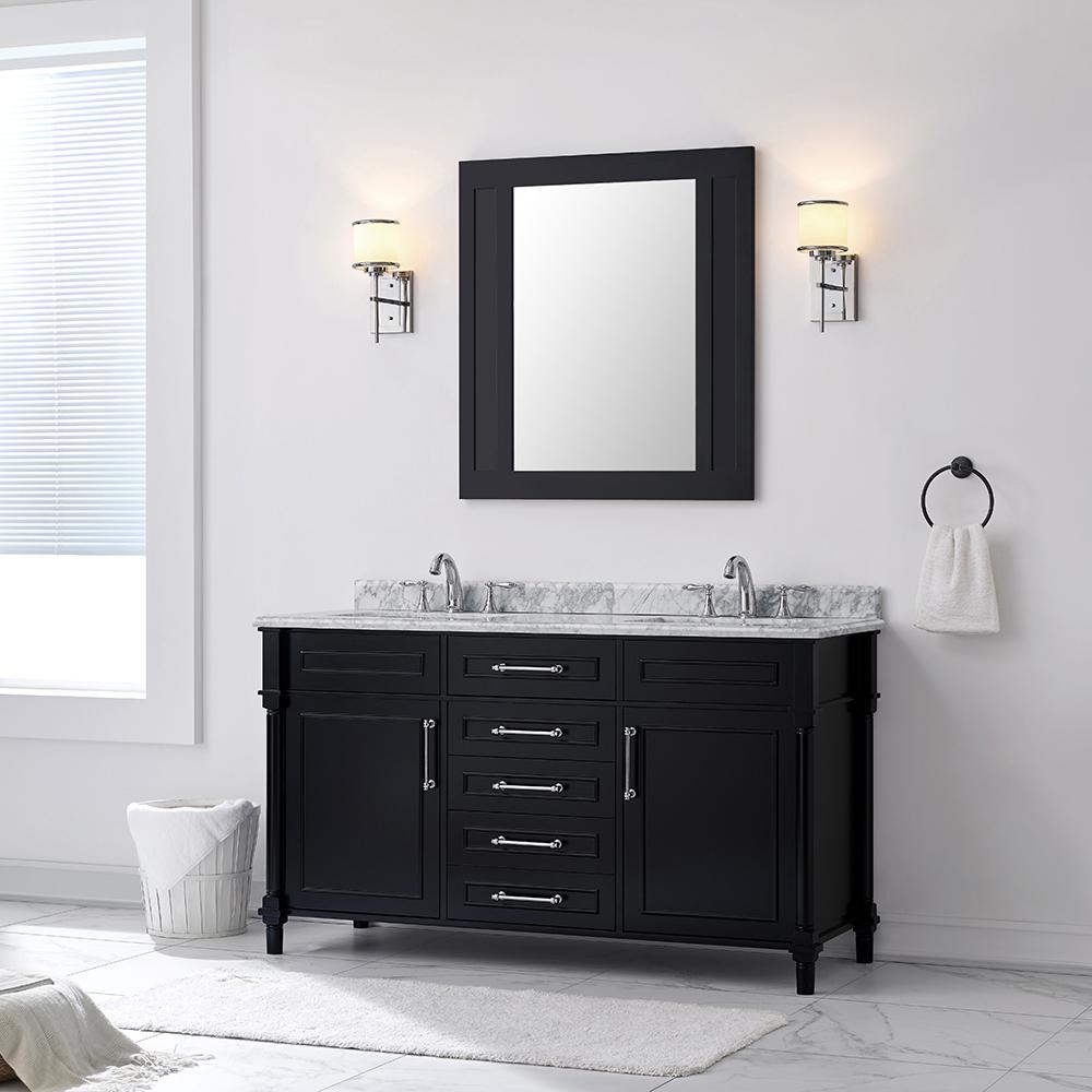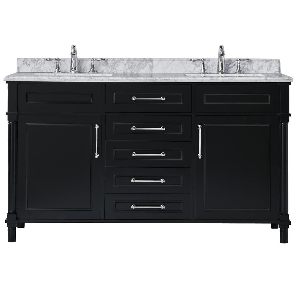 Let the Aberdeen 60 in. W x 22 in. D Vanity in Black with Marble Top in White with white Basin add a unique touch to your home decor. Designed with a smaller space in mind, this vanity has plenty of countertop space and drawer space for all of your toiletry needs.