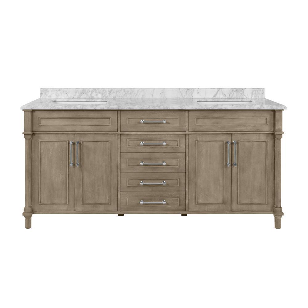 Authentic marble vanity top and backsplash may exhibit swirling or veining; these features are part of the natural beauty of stone and have no effect on function or durability