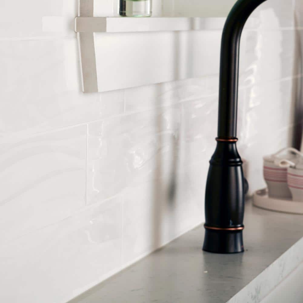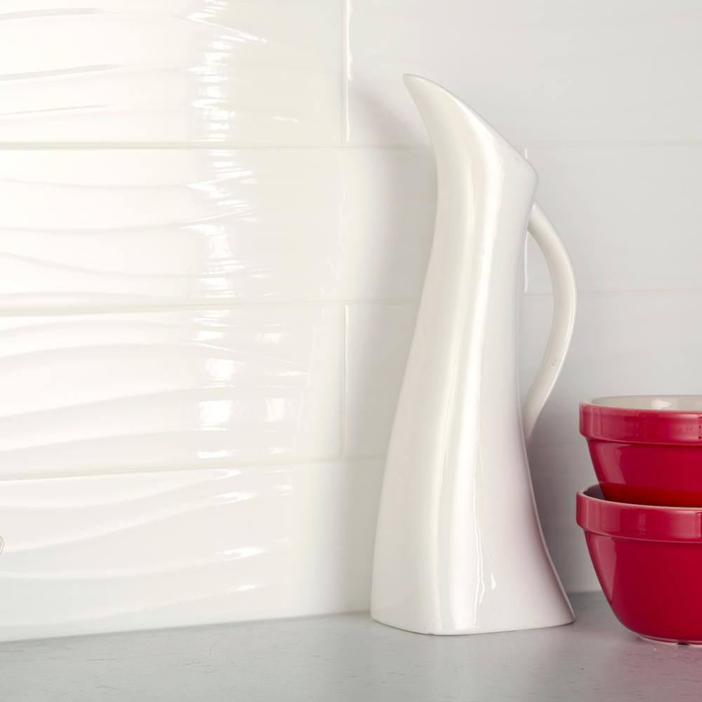 The gentle wave of this glossy ceramic tile adds movement and light to any wall, creating a serene, spa-like backdrop. Its elongated 4x16 silhouette feels tailored and modern, perfect for kitchens and baths alike. Style it with charcoal grout for subtle definition or keep it tonal for a seamless wash of white. Consider it a chic essential for polished, everyday luxury.