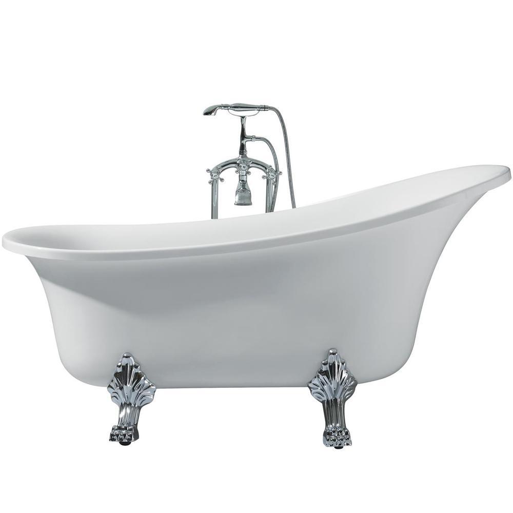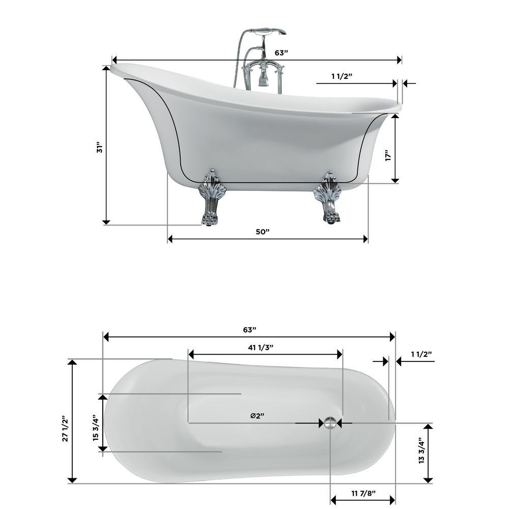 63 in. Acrylic Right Drain Oval Claw Foot Freestanding Bathtub in White