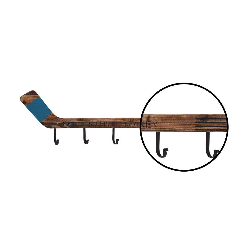 • Features a fir wood hockey stick wall mount with a slate blue paint blade strip