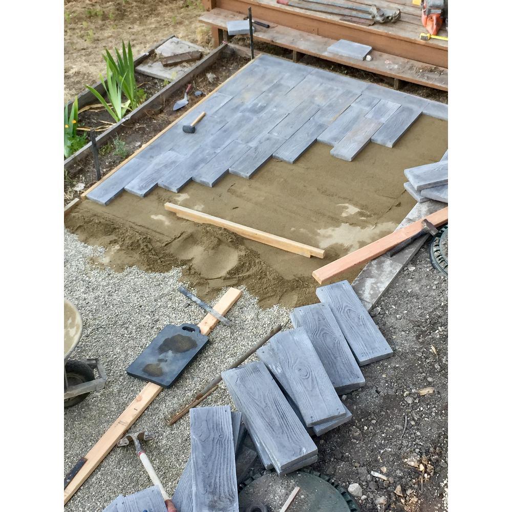 These gray concrete barnwood plank pavers offer a wood grain look that gives you a rustic color, texture and appearance of traditional weathered barnwood but with the durability of concrete. Easy-to-install and a complete patio set delivered to your front door on one pallet or use as individual pavers for stepping stones or a variety of outdoor inspiration projects. Once installed the pavers can be left to naturally age over time and weather or can be sealed with a concrete sealant to enhance the color variations in each paver. The pavers are individually sized at 24 in. x 8 in. and are 1.75 in. thick and come 60 units on a pallet for a total of 75 sq. ft. of coverage.